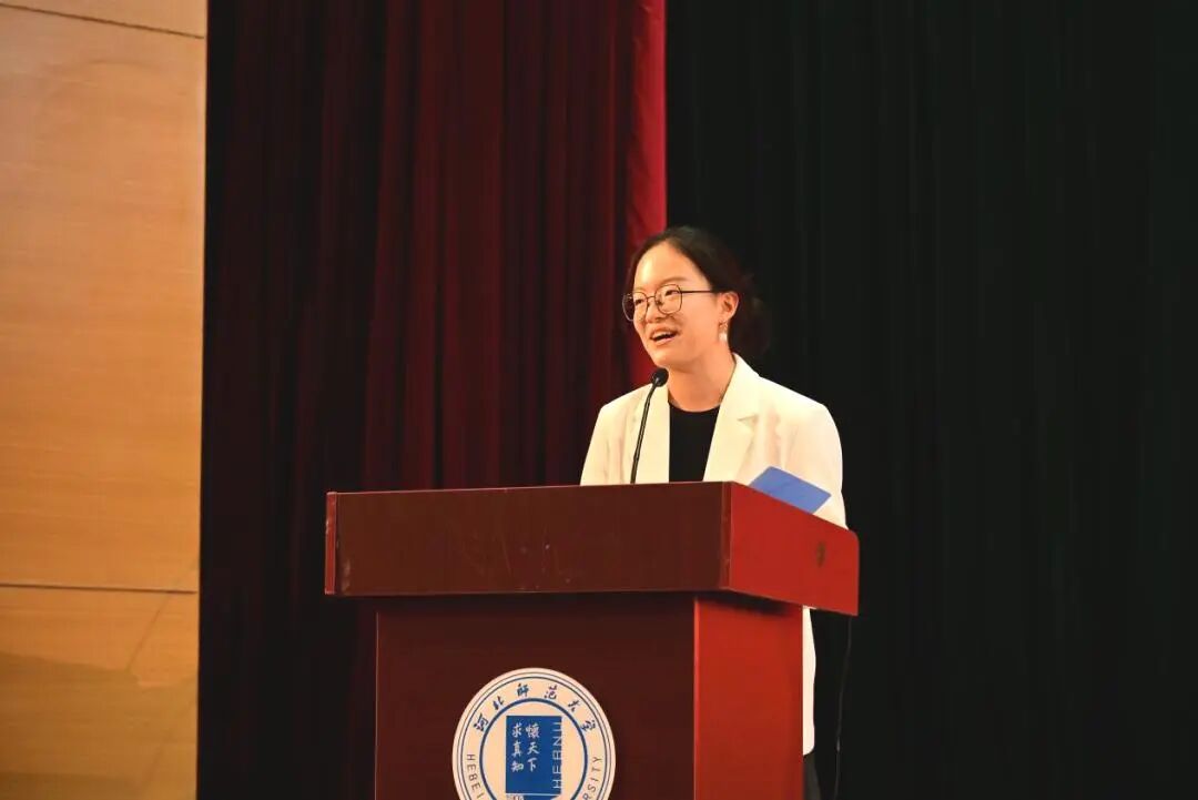 2025級英語語言文學(xué)專業(yè)碩士研究生文佳瑤作為新生代表發(fā)言。作為2024屆河北師范大學(xué)外國語學(xué)院本科畢業(yè)生,畢業(yè)后,她光榮加入河北師范大學(xué)研究生支教團(tuán),前往新疆生產(chǎn)建設(shè)兵團(tuán)第二師八一中學(xué)任教。結(jié)合自身經(jīng)歷,文佳瑤與全體同學(xué)共勉:深耕專業(yè),做求真知的探索者;投身實踐,做致用行的踐行者;涵養(yǎng)情懷,做懷天下的擔(dān)當(dāng)者。