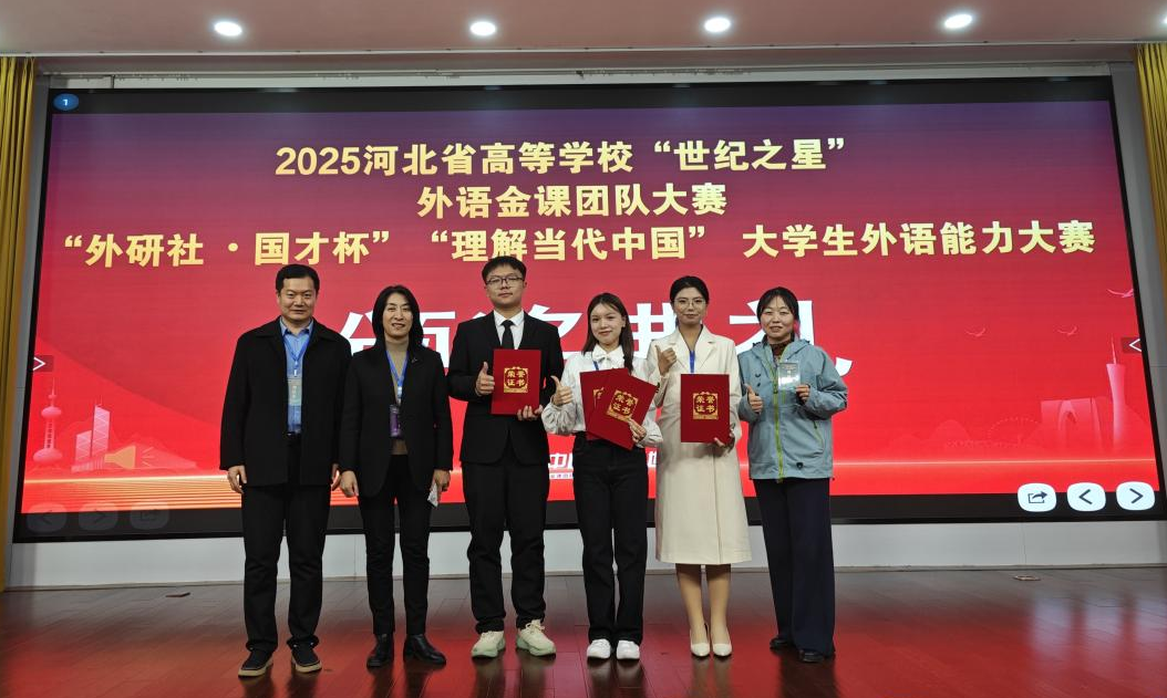 近日,2025 年河北省高等學校 “世紀之星”“外研社?國才杯”“理解當代中國” 全國大學生外語能力系列大賽圓滿收官。我院學子在多語種、多賽項的激烈角逐中表現(xiàn)亮眼,斬獲多項榮譽。