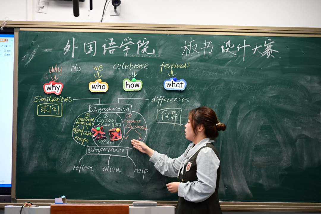 板書設(shè)計(jì)大賽中,選手將課堂教學(xué)核心要義濃縮呈現(xiàn)在有限的板面上,她們用簡(jiǎn)潔的線條勾勒知識(shí)框架,用形象的圖示化抽象為具象,用色彩突出重點(diǎn)、明晰難點(diǎn),讓方寸黑板成為承載教學(xué)智慧、傳遞知識(shí)的生動(dòng)載體。