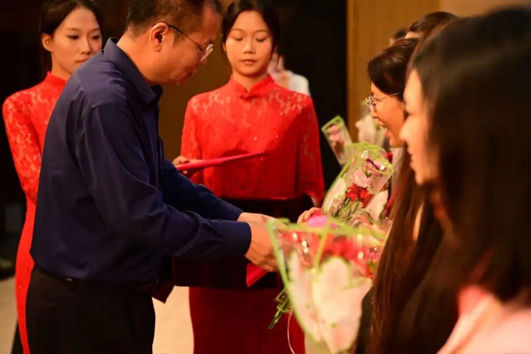 為幫助新生適應(yīng)大學(xué)生活,搭建成長橋梁,學(xué)院為各班配備專業(yè)班主任,解答學(xué)生學(xué)業(yè)困惑,疏導(dǎo)成長煩惱。2025級新生代表代表為班主任老師獻(xiàn)花,學(xué)院黨委書記薛文飛為班主任頒發(fā)聘書。每紙聘書不僅是一份責(zé)任,更是一份期待。