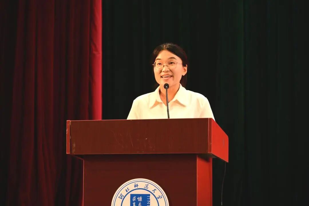 2025級英語語言文學(xué)專業(yè)碩士研究生文佳瑤作為新生代表發(fā)言。作為2024屆河北師范大學(xué)外國語學(xué)院本科畢業(yè)生,畢業(yè)后,她光榮加入河北師范大學(xué)研究生支教團(tuán),前往新疆生產(chǎn)建設(shè)兵團(tuán)第二師八一中學(xué)任教。結(jié)合自身經(jīng)歷,文佳瑤與全體同學(xué)共勉:深耕專業(yè),做求真知的探索者;投身實踐,做致用行的踐行者;涵養(yǎng)情懷,做懷天下的擔(dān)當(dāng)者。