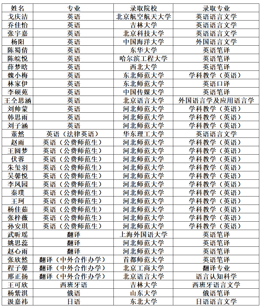 金秋落筆青春答卷,捷報傳揚勤學芳華。外國語學院35名2022級本科生成功推免,升入北京航空航天大學、山東大學、東北師范大學、中國傳媒大學等知名高校深造,其中16人被“雙一流”高校錄取,開啟學業(yè)新征程!