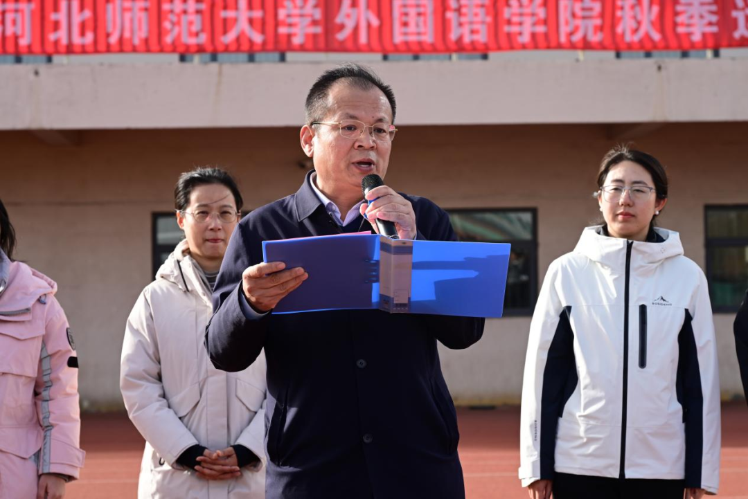 30日下午14時許,運動會正式開幕。外國語學院黨委書記薛文飛、黨委副書記霍晨靜以及各年級輔導員出席開幕式。